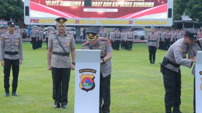 Empat PJU tersebut yakni Dir Pamobvit, Kabid Humas, Kasetum, Ka. SPN sedangkan 2 Kapolres yang di Sertijab yakni Kapolres Sumbawa dan Kapolres Sumbawa Barat.