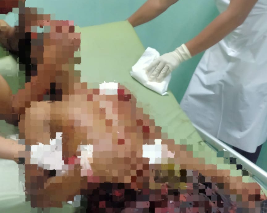 Selang beberapa saat istri korban mendengar teriakan meminta tolong, ia kemudian bergegas menuju sumber suara , Sesampainya pada sumber suara tersebut ia melihat korban sudah dalam posisi tergeletak dengan luka tusukan dibagian Perut, Dada, Pinggang, Punggung dan Kemaluan Korban.