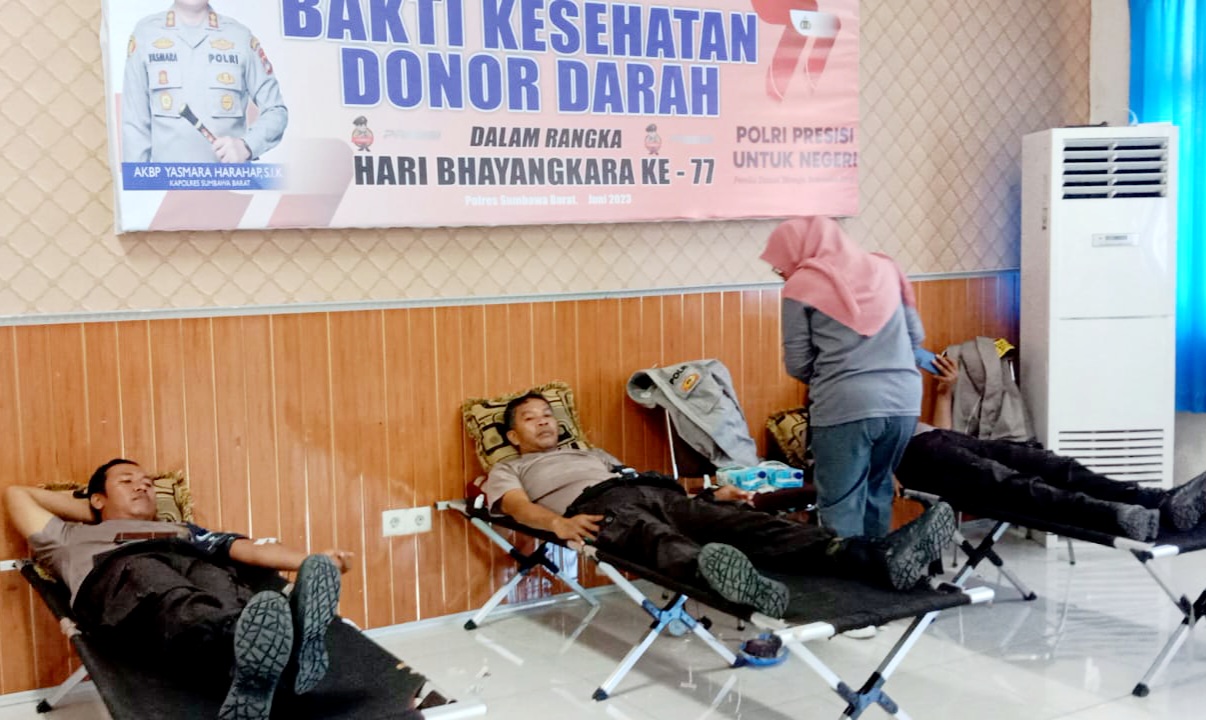 Kapolres Sumbawa Barat, AKBP Yasmara Harahap,S.IK, melalui Kasi Humas IPDA Eddi Soebandi, S.Sos menyampaikan kegiatan bakti sosial mantap ini dilakukan dengan agenda donor darah oleh personil Sat Lantas Polres KSB.