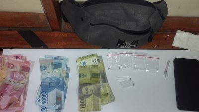 Saat dilakukan pengeledahan terhadap terduga pelaku petugas mendapatkan barang bukti berupa 1 buah Tas yang didalamnya berisikan 3 buah klip kristal bening berisikan 1,31 gram berat berutto Narkoba Jenis Sabu, 1 buah kaca alat menghisap sabu dan Uang tunai sejumlah Rp. 1.414.000 ( satu juta empat ratus empat belas ribu rupiah ) serta 1 buah HP
