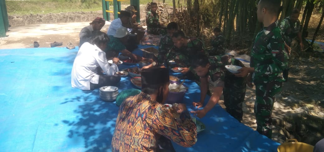 Lombok Tengah – Warga dusun batu tinggang desa Labulia merayakan momen bahagia bersama anggota Satuan Tugas (Satgas) TMMD ke-117 dengan menggelar acara syukuran di tempat sederhana di atas jembatan yang baru selesai di bangun.
