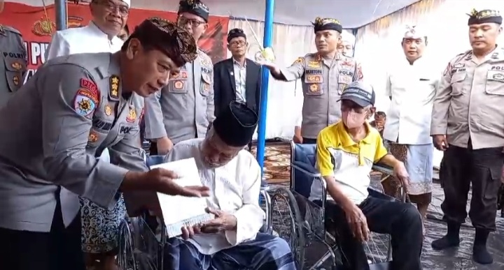 Kemudian acara diakhiri dengan pembagian paket bantuan dan kursi roda secara simbolis dan poto bersama , kegiatan berjalan dengan lancar aman dan tertib. ( red )