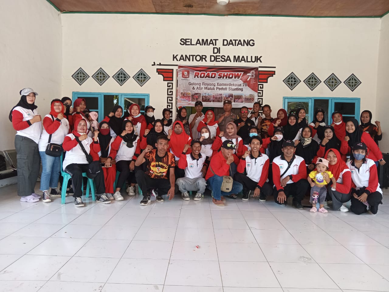 SUMNAWA BARAT, infoaktualnews.com_ Bhabinkamtibmas Desa Benete Bripka Edi Purwanto anggota polsek maluk menghadiri kegiatan road show gotong royong kemerdekaan RI ke 78 dan Agen Gotong Royong (AGR) Peduli Stunting, bertempat diaula kantor Desa Maluk Kecamatan Maluk Kabupaten Sumbawa Barat.
