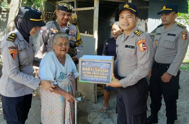 Sedangkan untuk peserta Latja yang ditempatkan di Polsek Mataram, selain melaksanakan kegiatan manajemen fungsi teknis kepolisian para peserta Latja juga melaksanakan berbagai kegiatan sosial, salah satunya bakti sosial berupa pemberian paket sembako ke beberapa warga kurang mampu yang tinggal disekitar Polsek Mataram.