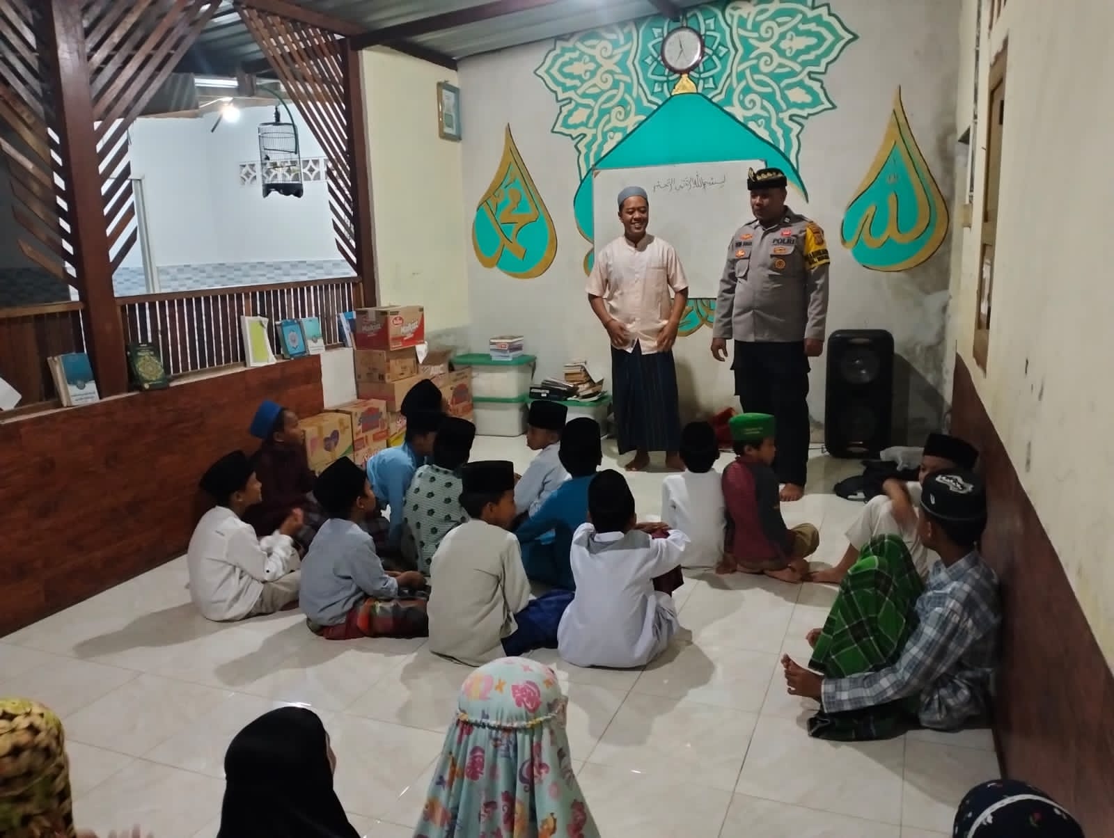 Inisiatif memberikan sarana kontak berupa Buku Al Qur’an dan Buku Tulis kepada anak-anak yang belajar untuk membantu sebagai kebutuhan di pondok pengajian Holaqoh Tahsin, ucap Aiptu Dewa Suarayasa