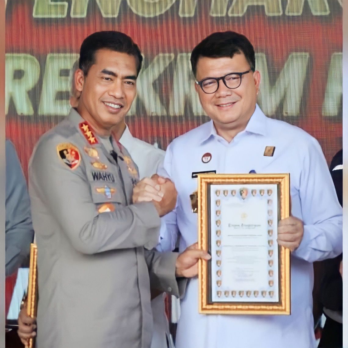 Pada kesempatan itu, Wahyu Widada memberikan penghargaan kepada seluruh pihak terkait atas kerjasamanya dalam pengungkapan jaringan narkoba ini. Salah satu penghargaan diberikan kepada Direktur Jenderal Pemasyarakatan (Dirjen PAS) Kemenkumham Reynhard Silitonga. (IA)