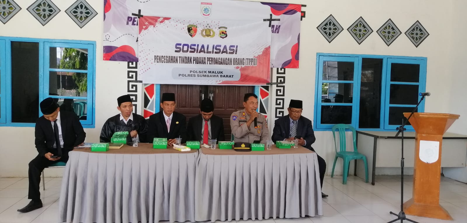 SUMNAWA BARAT,infoaktualnews.com_ Kapolsek Maluk AKP. Rahmansyah bersama dengan Bhabinkamtibmas Maluk AIPDA Sugeng Riyanto Polres Sumbawa Barat melakukan kegiatan sosialisasi TPPO ke Pemdes dan masyarakat.