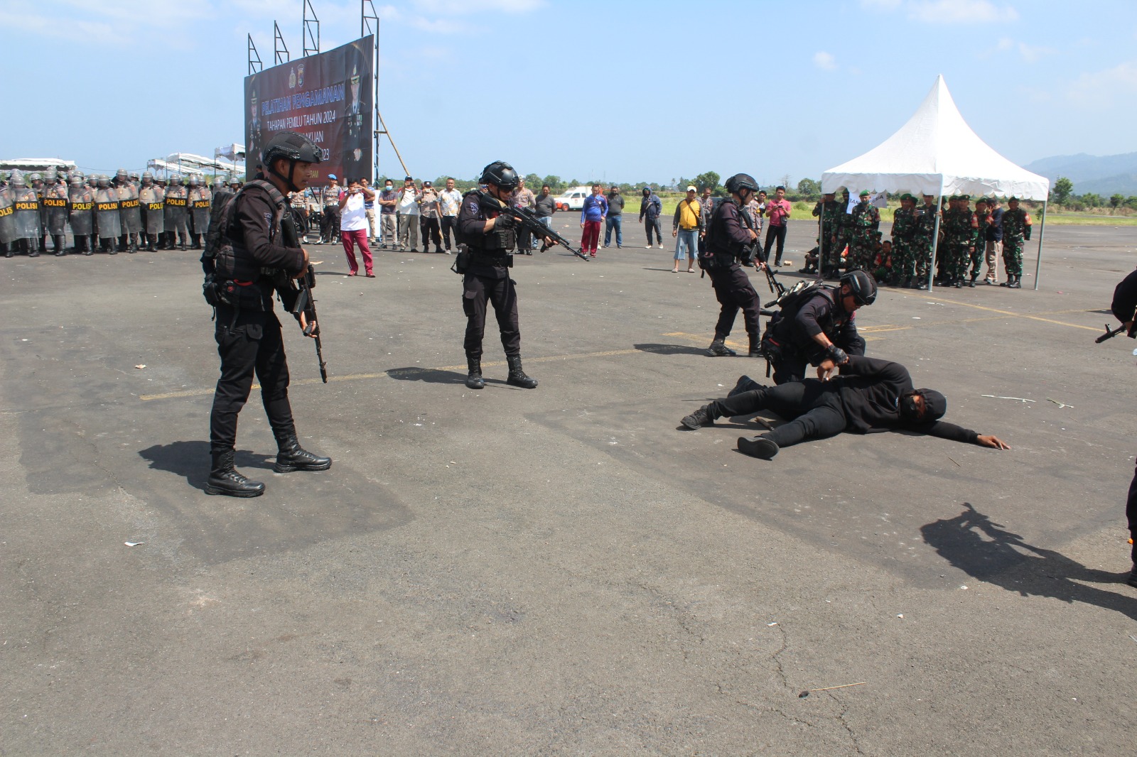“Semua kemungkinan terburuk telah kami diskusikan sebelumnya dengan seluruh fungsi yang ada di kepolisian, sehingga peristiwa atau kejadian-kejadian,yang paling memungkinkan terjadi pada saat proses pemilu nanti, di peragakan saat ini, sehingga nanti pada saat pelaksanaan pemilu upaya penindakan dapat dilakukan dengan mudah,”terangnya.