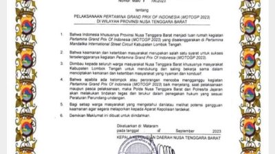 Dalam maklumat Nomor: Mak/I/IX/2023 tertanggal 18 September 2023, kapolda NTB mengimbau kepada seluruh warga masyarakat NTB khususnya masyarakat Kabupaten Lombok Tengah, untuk mendukung dan bekerja sama dalam menciptakan lingkungan yang aman dan kondusif selama MotoGP 2023 berlangsung.