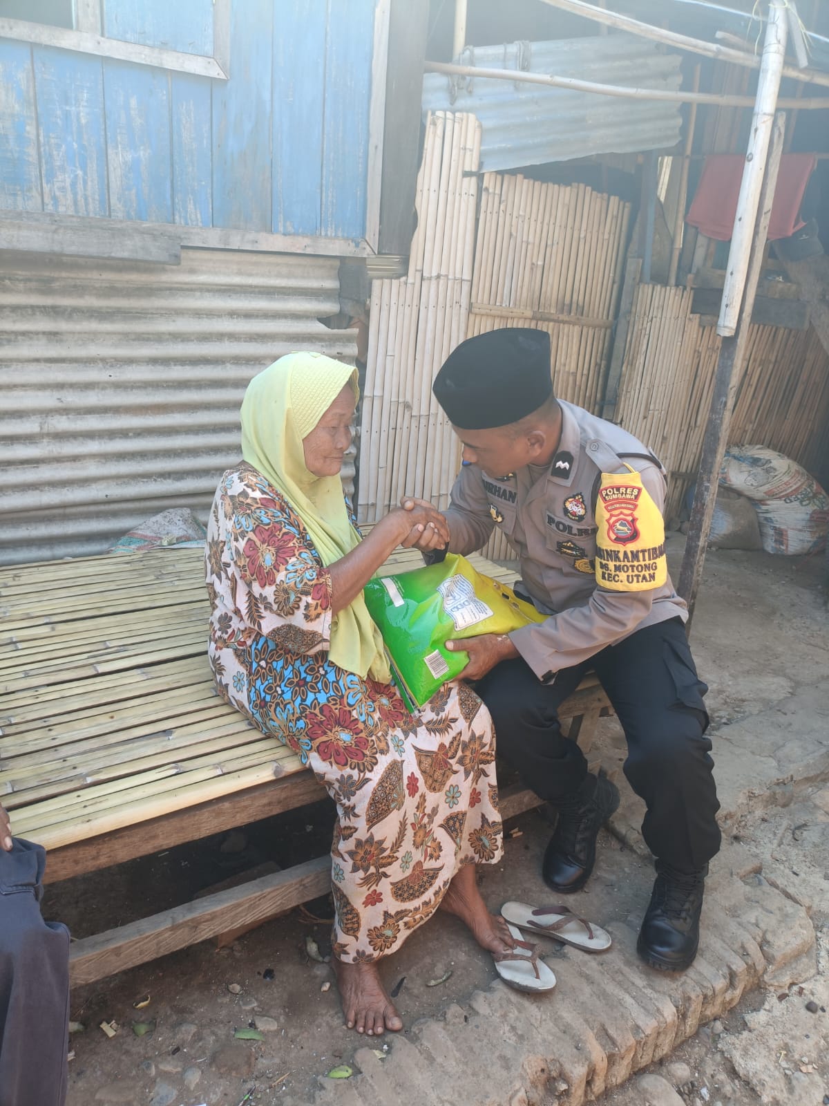 SUMBAWA BESAR ,infoaktualmews.com _ Sebagai salah satu wujud menjalin silaturahmi, kedekatan dan kebersamaan dengan warga binaan disamping tugas rutin Bhabinkamtibmas sebagai pemelihara situasi Kamtibmas di desa binaan, Bhabinkamtibmas Polsek Utan melaksanakan kegiatan sambang sekaligus memberikan bantuan beras kepada warga lansia, Selasa (03/10/23)