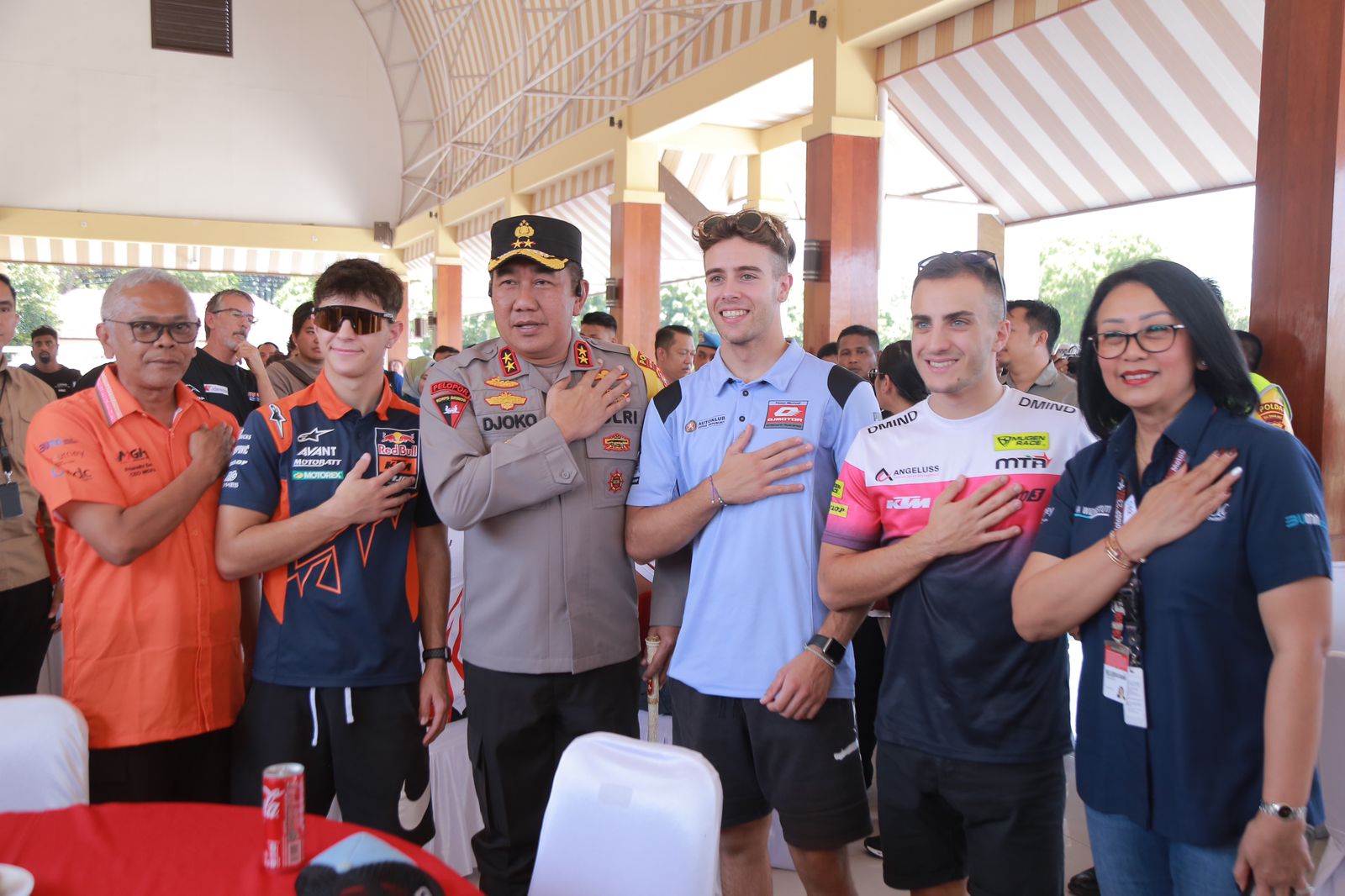MATARAM ,inroaktualnews.com_ Sejumlah Raider dari berbagai negara termasuk Indonesia yang akan menguji kemampuan di Pertamina Mandalika internasional Street Sircuit saat event Internasional MotoGP hadir di Tribun Bhara Daksa Polda NTB, Rabu (11/10/2023).