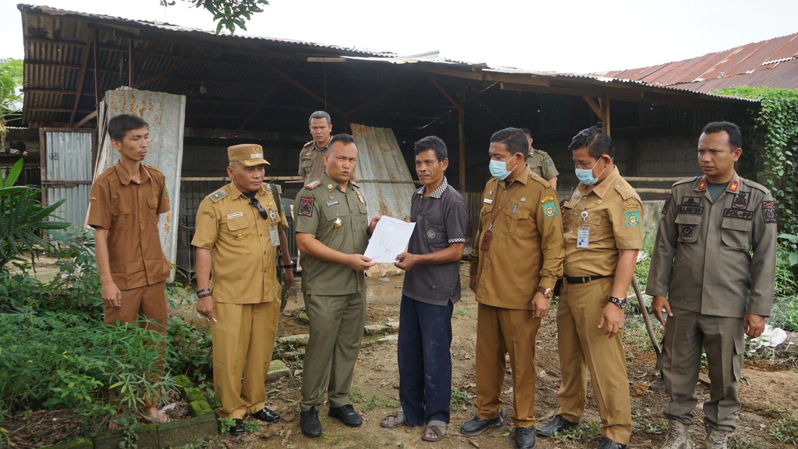 Selanjutnya Kasat Pol PP kabupaten Langkat Dameka Putra Singarimbun S. STP memberikan surat peringatan pertama kepada pemilik ternak babi dan bebek.