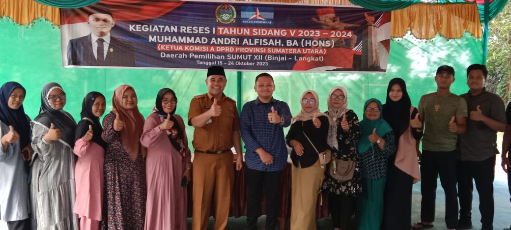 Langkat, INFOAKTUALNEWS.Com- Muhammad Andri Alfisah ketua kimisi A DPRD Sumtera Utara fraksi partai Demokrat laksanakan reses di Desa Bukit Melintang Kecamatan Wampu Kabupaten Langkat. Selasa/17/10/2023.