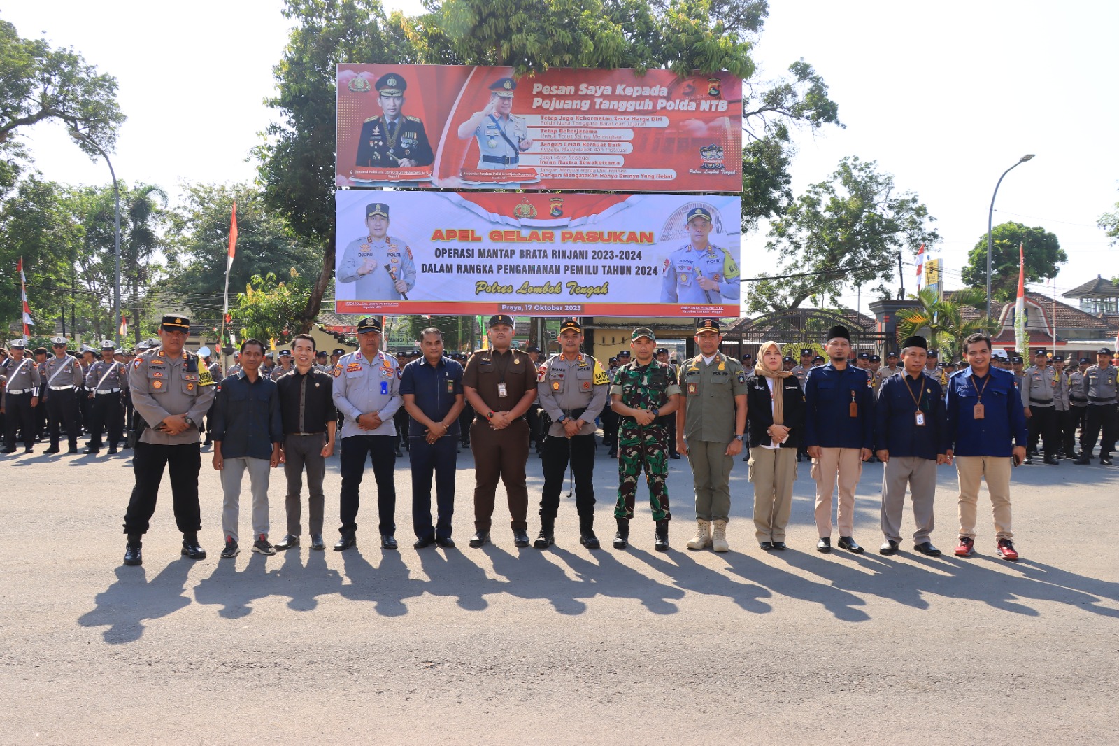 Lombok Tengah – Apel Gelar Pasukan Operasi Mantap Brata Rinjani 2023-2024, Dandim 1620/Loteng Letkol Kav Andi Yusuf Kertanegara bersama Kapolres memastikan kesiapan TNI dan Polri dalam mengamankan Pemilihan Umum (Pemilu) tahun 2024 mendatang.