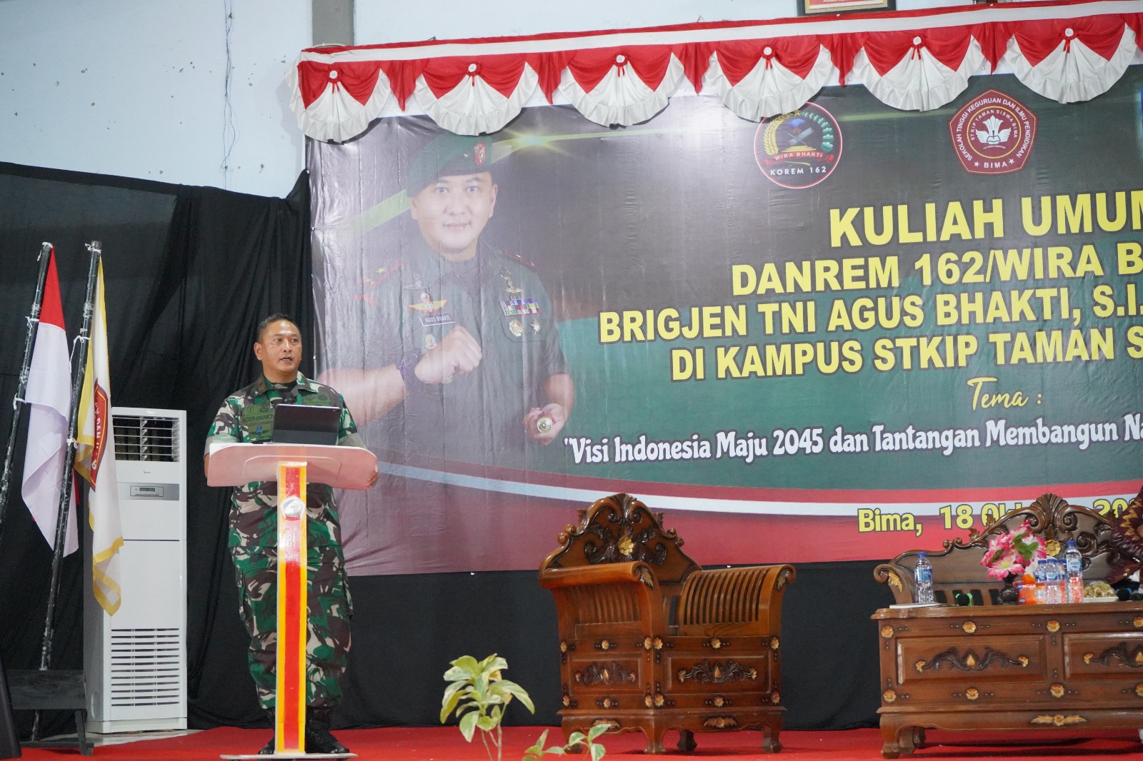 Kepada mahasiswa Danrem 162/WB Brigjen TNI Agus Bhakti mengatakan bahwa mahasiswa/generasi muda harus memiliki peran penting dalam menjaga keutuhan, persatuan dan kesatuan bangsa menuju Indonesia Maju 2045. Di era digital ini, tantangan yang dihadapi oleh Indonesia semakin kompleks. Generasi muda harus mampu menyelesaikan permasalahan-permasalahan tersebut dengan sebagai agen perubahan, penjaga nilai dan penerus bangsa.