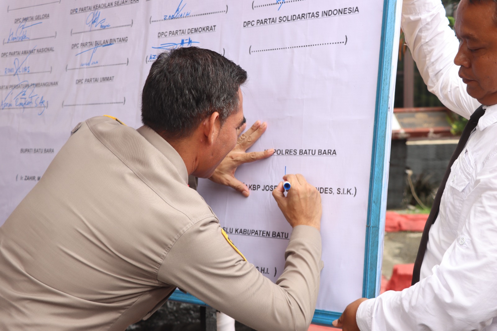 Pesan ini disampaikan disela sela kegiatan saat deklarasi damai Pemilu 2024 oleh seluruh Partai Politik dan tokoh masyarakat yang digelar di Polres Batu Bara beberapa saat lalu.