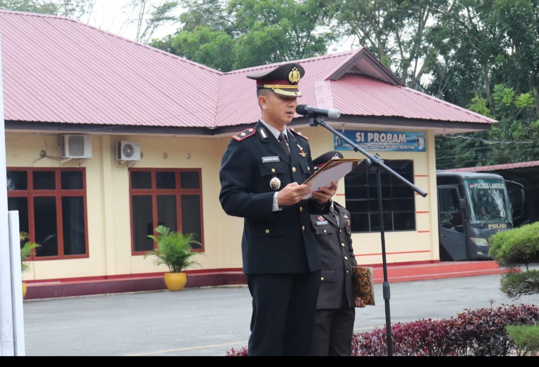 Sebagai Inspektur Upacara WakaPolres Langkat KOMPOL Dr. Hendri ND Barus SH, SIK, MM dan Komandan Upacara IPTU Simon Simatupang, SH.