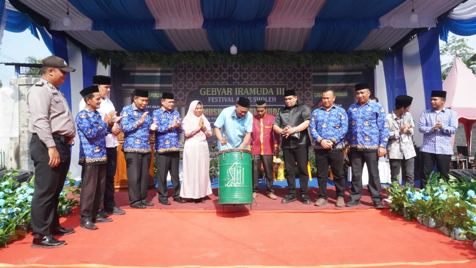 “Dengan mengucapkan bismillahirrahmanirrahim Gebyar Iramuda 3 Festival Anak Sholeh dan Peringatan Maulid Nabi Muhammad SAW 1445 H dengan resmi saya buka” ucapnya sambil memukul beduk.