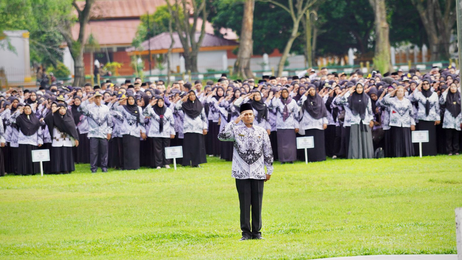Langkat, INFOAkTUALNEWS.COM – Plt Bupati Langkat H.Syah Afandin SH menjadi Pembina Upacara Hari Guru Nasional (HGN) dan HUT Persatuan Guru Republik Indonesia (PGRI) ke-78 Tahun 2023, bertempat di Alun-alun T Amir Hamzah Stabat, Sabtu (25/11/2023).