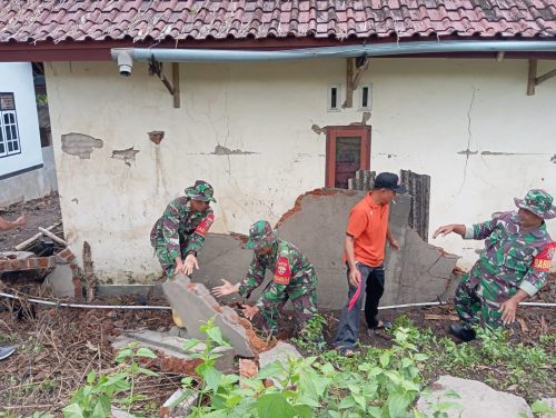 Tembok Pembatas Roboh Timpa Rumah Warga, Koramil 1615-11/Aikmel Sigap Bantu Warga