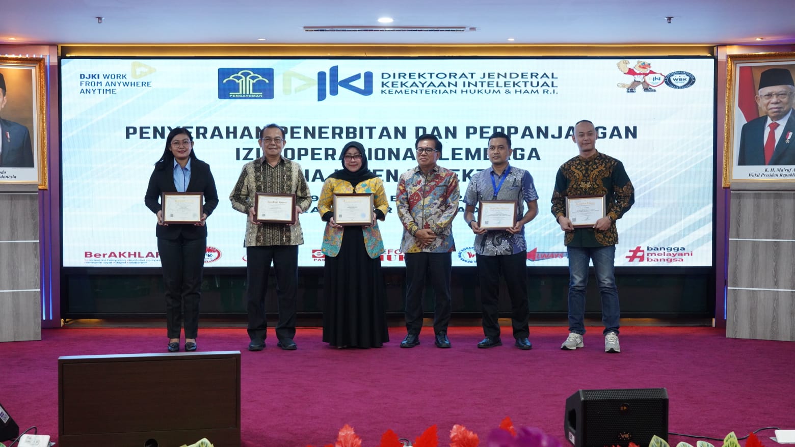 Selain itu, Dirjen KI juga menyerahkan penerbitan dan perpanjangan izin operasional untuk Lembaga Manajemen Kolektif (LMK) bidang musik dan/atau lagu dan bidang literasi. Surat izin diserahkan Direktorat Jenderal Kekayaan Intelektual (DJKI) Kementerian Hukum dan HAM dengan catatan bahwa DJKI dan Dewan Pengawas LMKN masih memberikan pembinaan kinerja efektivitas dan efisiensi seluruh LMK.