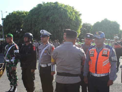 Apel gelar pasukan yang diikuti oleh sejumlah personel Polres, Kodim, Brimob, Polairud, Dinas Perhubungan dan Satpol PP dengan pimpinan apel Kapolres Lombok Timur AKBP Hery Indra Cahyono.