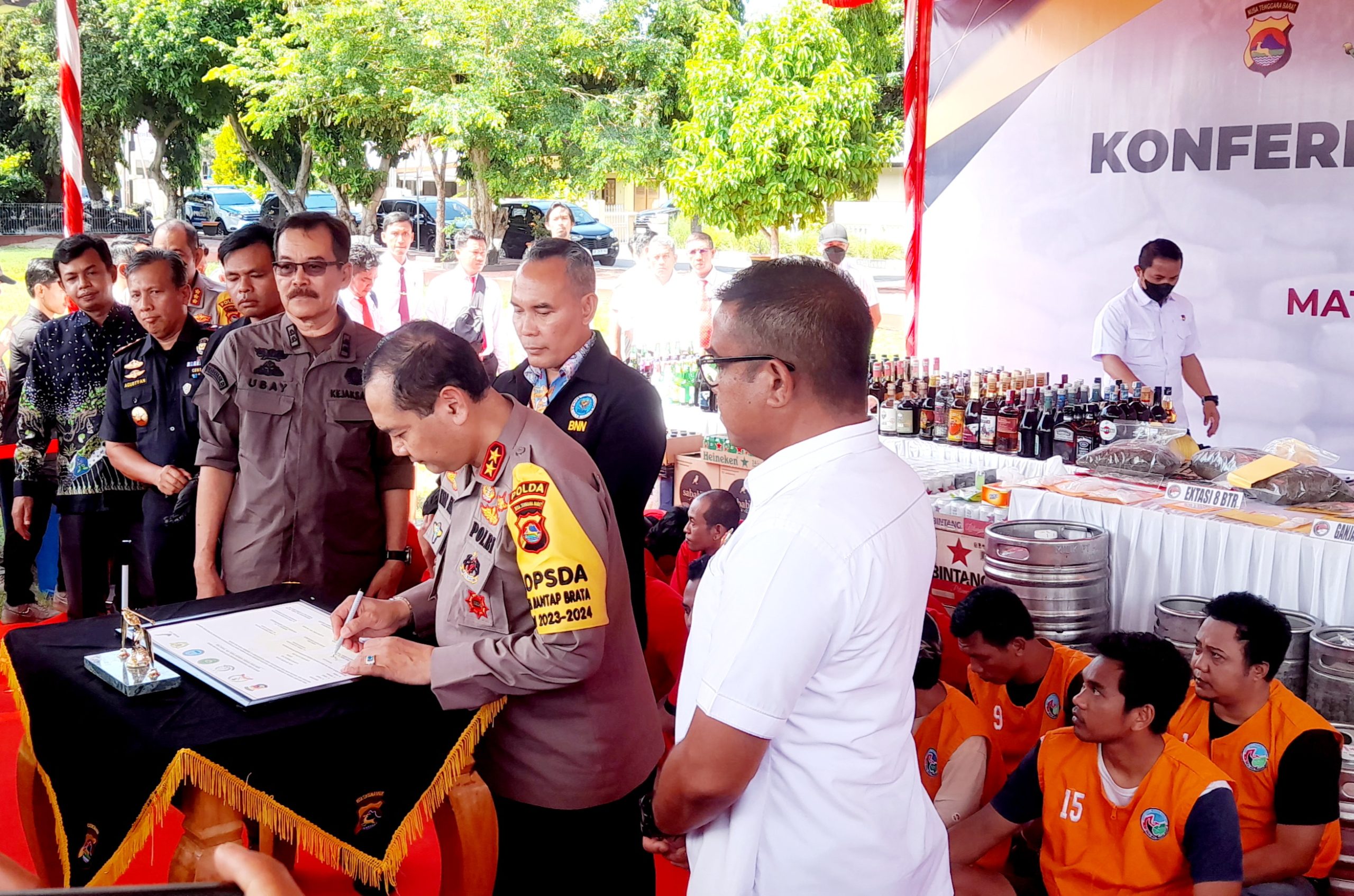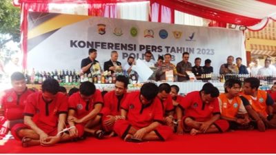 MATARAM , infoaktualnews.com _ Polda NTB menggelar Apel Gelar Pasukan Operasi Lilin Rinjani 2023 untuk mengamankan hari natal dan tahun baru 2024 kemudian dilanjut dengan relese Akhir Tahun 2023 sekaligus pemusnahan barabg bukti berupa narkoba,ganja dan minuman beralkohol ( miras )