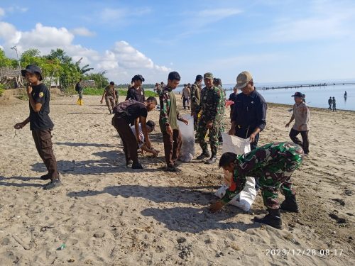 INFOAKTUALNEWS.com l Lombok Timur – Koramil 1615-07/Sakra menggelar kick off pembersihan pantai bersama Polsek Sakra Timur dan Pemerintah Kecamatan Sakra Timur di Pantai Manange Rambang Desa Surabaya Kecamatan Sakra Timur Lombok Timur, Kamis (28/12/2023).