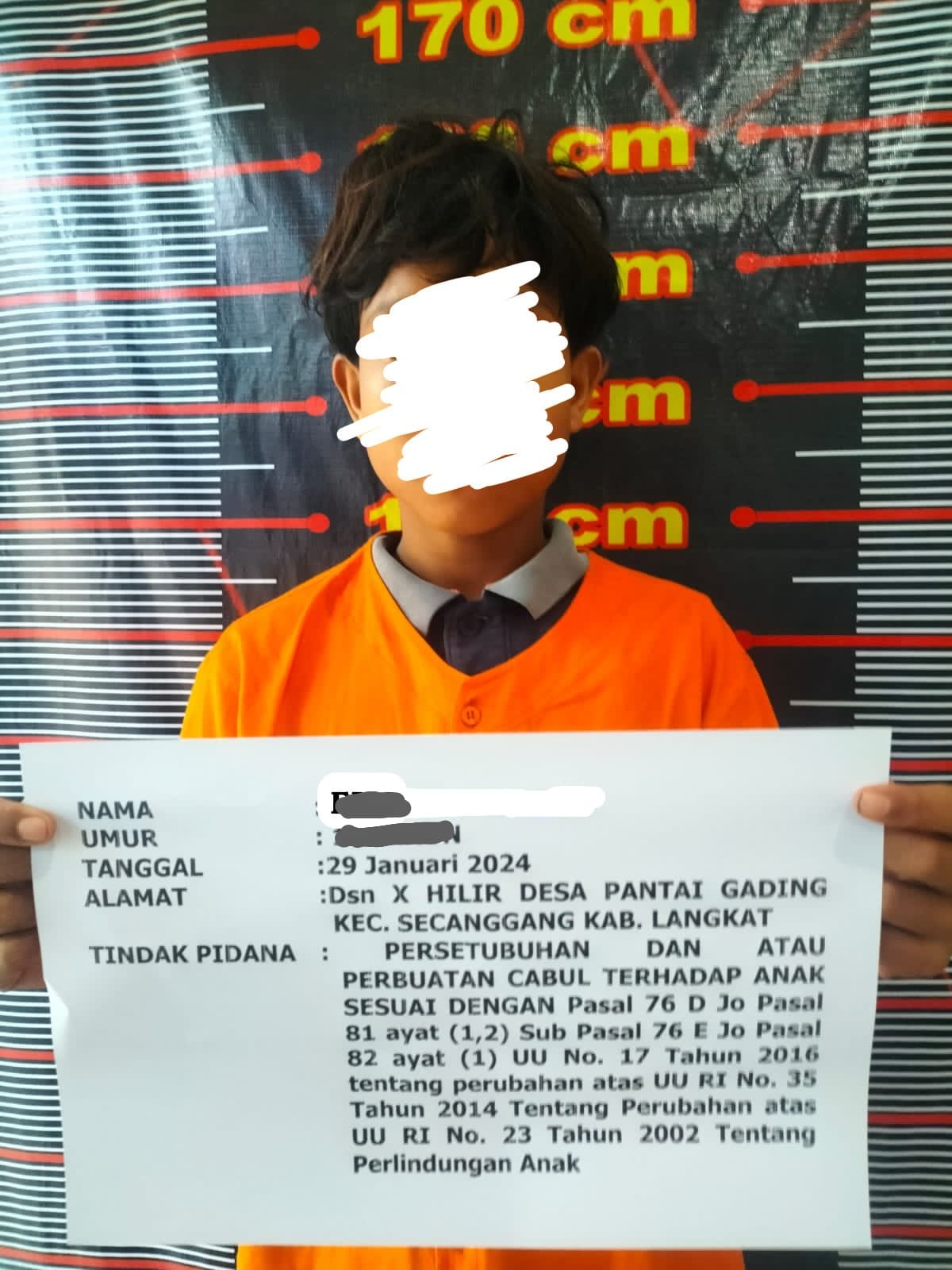 Terhadap pelaku disangkakan perkara persetubuhan terhadap anak sebagaimana dimaksud dalam pasal 76 D Jo Pasal 81 ayat (1,2) Sub Pasal 76 E Jo Pasal 82 ayat (1) UU RI No. 17 tahun 2016 Tentang Perubahan atas UU RI No 35 Tahun 2014 tentang perubahan atas UU UU RI No. 23 tahun 2002 tentang Perlindungan Anak. (IS/IA)