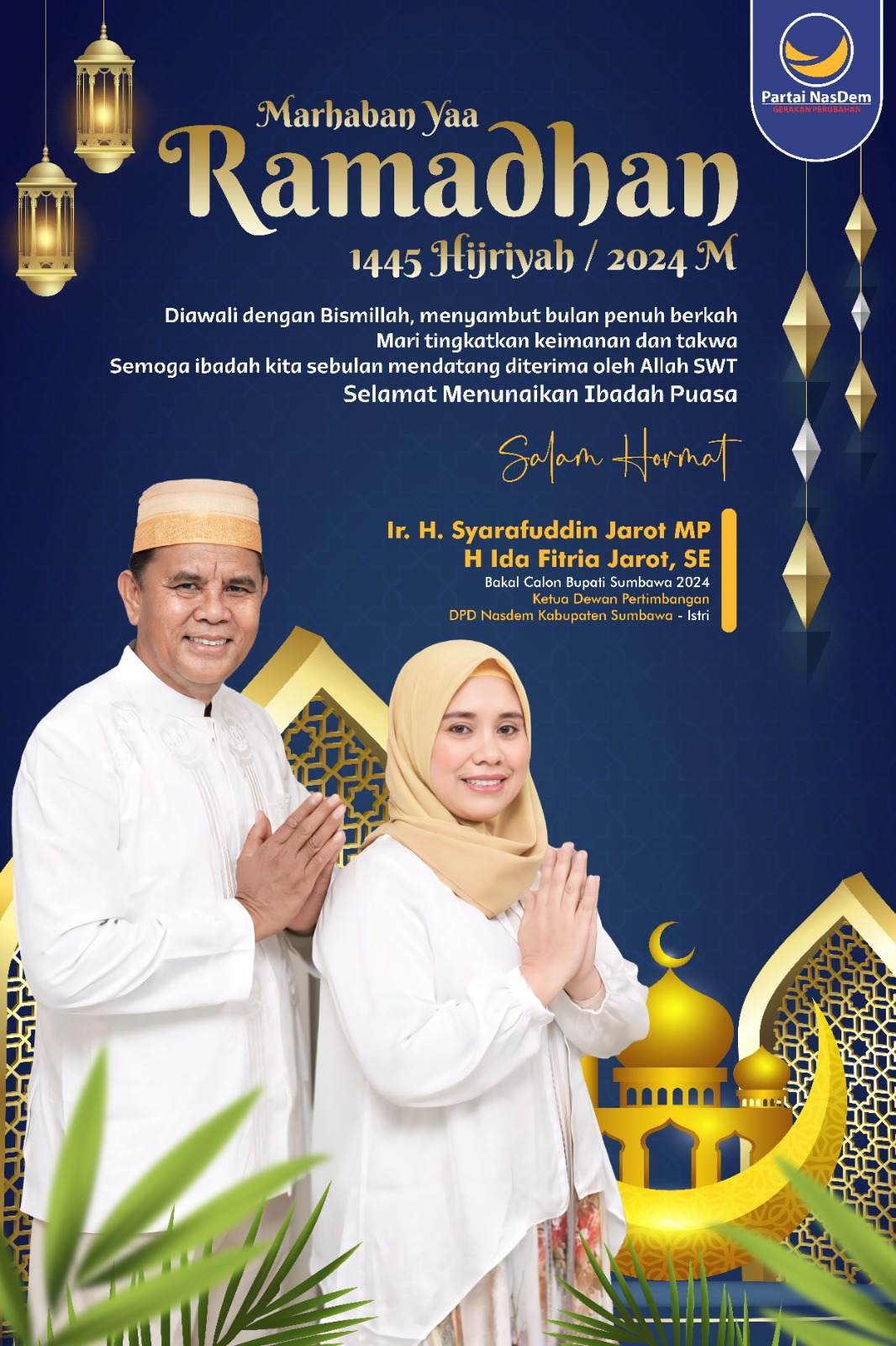 Ir. H. Syarafuddin Jarot, MP Dan Hj Ida Fitria Jarot, SE, Mengucapkan Selamat Menyambut Bulan Suci Ramadhan 1445 H