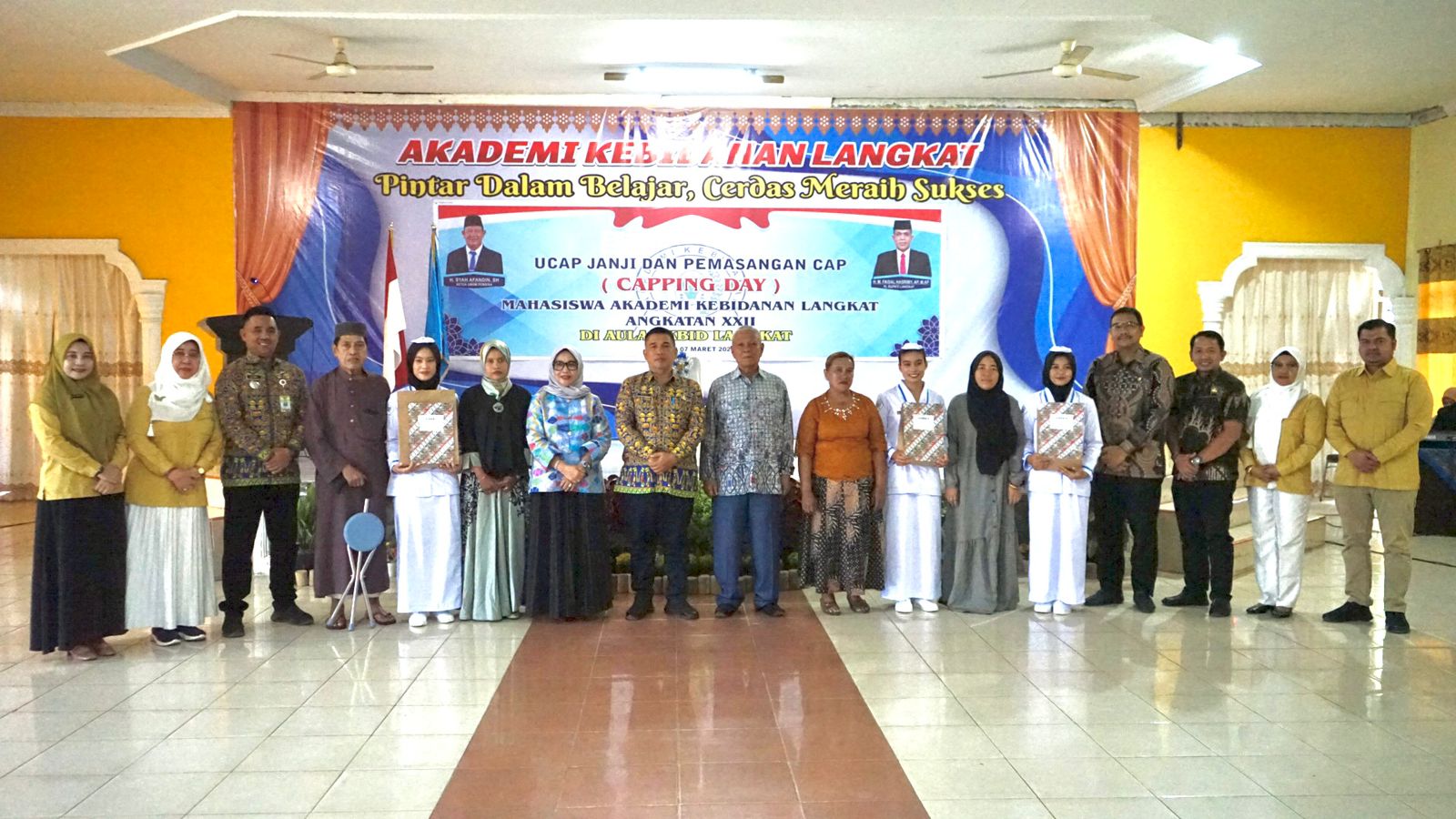 Langkat, INFOAKTUALNEWS.COM- Pj Bupati Langkat H. Faisal Hasrimy, AP,  M.AP dalam hal ini diwakili  Asisten Adm Umum Musti, SE, M.Si Menghadiri Ucap janji dan Pemasangan Cap ( Capping Day) Mahasiswa Akbid Langkat Angkatan XXII . Di Aula Akbid Langkat, Kamis (7/3/2024).