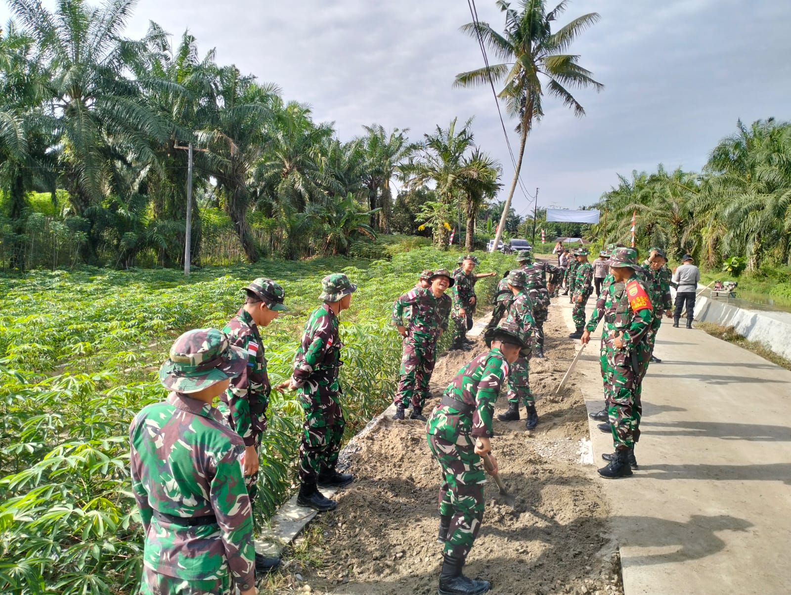 Salah satu warga Simpang Gambus Marhamah (32) menyampaikan apresiasi atas tindakan personil tentara yang bergantian menimbun badan jalan sehingga mempermudah akses berselisih saat melintasi jalan.
