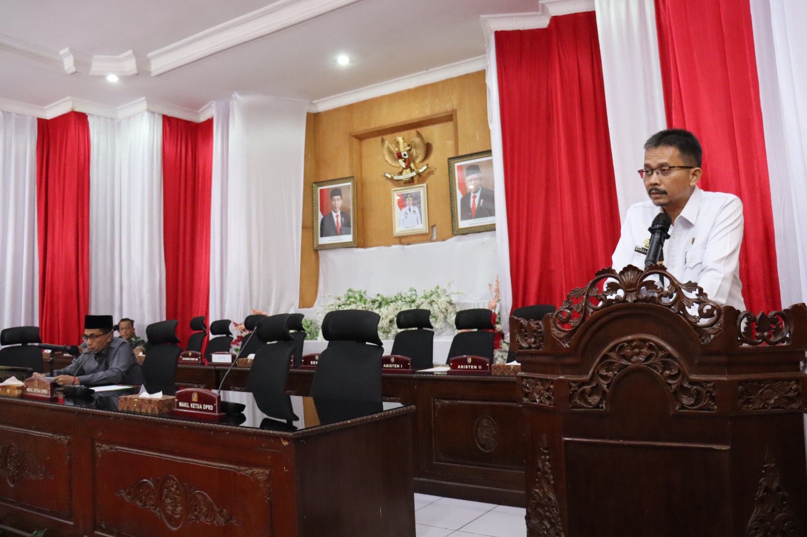Bambang, H.S Asisten II menjelaskan tentang tanggapan dari Fraksi Partai Golkar terkait tidak tercapainya target dari sektor pajak dan retrebusi Pendapatan Asli Daerah (PAD).