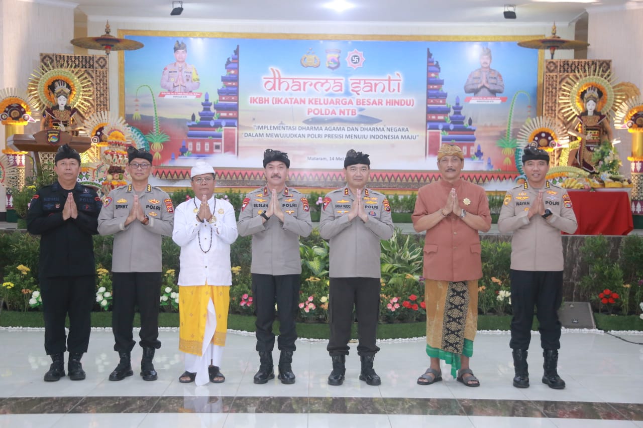 Acara Dharma Santi tahun 2024 dengan tema “Implementasi Dharma Agama dan Dharma Negara Dalam Mewujudkan Polri Presisi Menuju Indonesia Maju” dihadiri Wakapolda NTB, segenap PJU Polda NTB, Ketua PHDI NTB, Ketua IKBH Polda NTB, erta seluruh Personil keluarga besar Hindu Polda NTB.