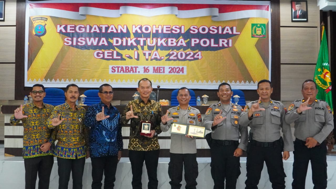 Langkat, INFOAKTUALNEWS.COM- Pj.Bupati Langkat H.M.Faisal Hasrimy AP, MAP di wakili Sekda Langkat Amril,S.Sos,M.AP hadiri Kegiatan kohesi sosial siswa diktukba polri gelombang-I TA. 2024,bertempat ruang pola kantor bupati Langkat, kamis (16/05/2024).