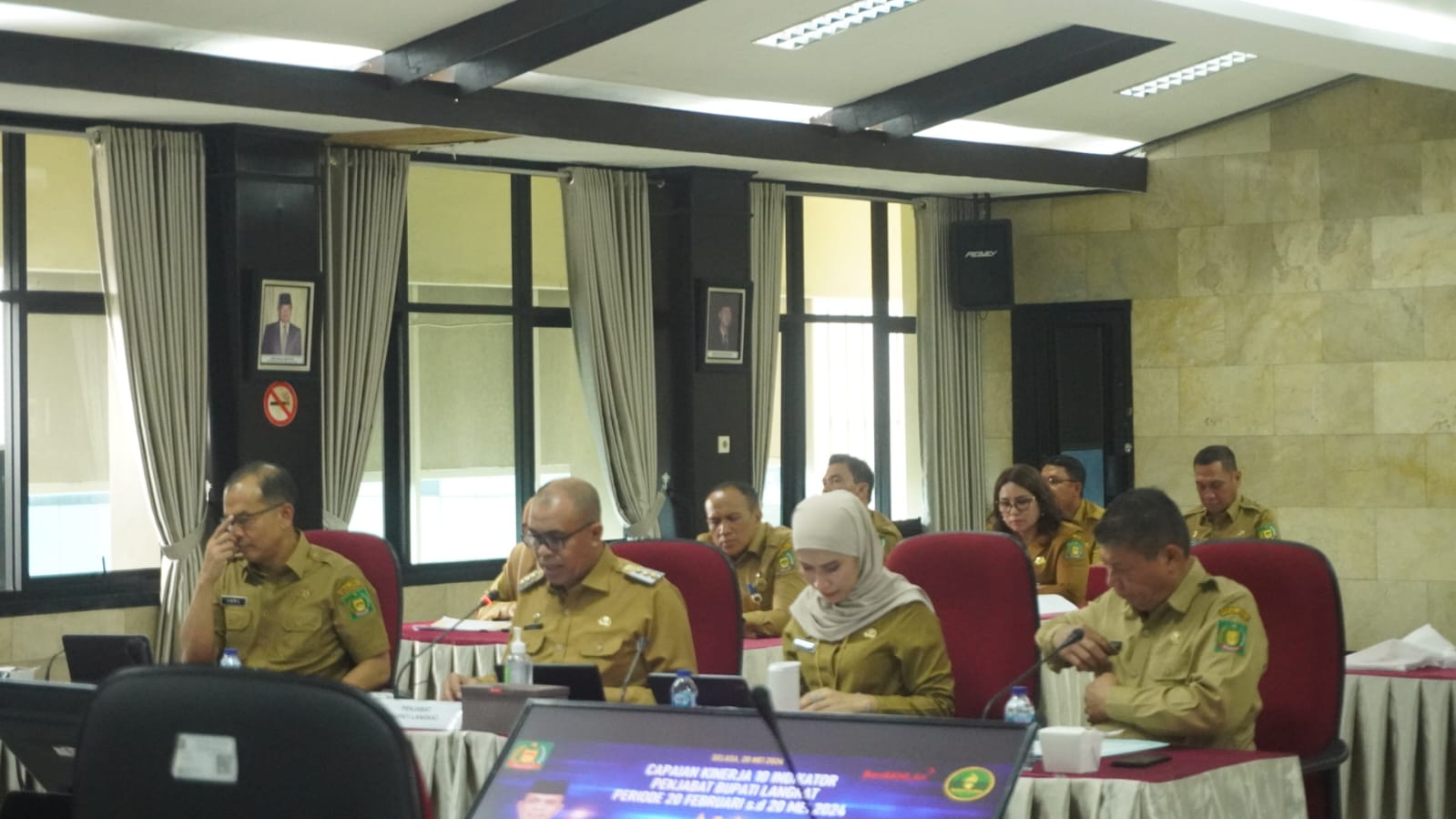“Tetap semangat dalam menjalankan tugas yang diamanahkan”, Pesan Evaluator VI, Muhammad Dimiyati, S.Sos., M.TP (PPUPD Ahli Utama). Ia juga memberikan apresiasi atas substansi penyajian laporan yang disampaikan, terutama atas meningkatnya jumlah warga Langkat yang sudah tercover JKN (Jaminan Kesehatan Nasional). Beliau juga menyampaikan agar mengoptimalkan digitalisasi pembayaran retribusi dalam Upaya peningkatan PAD.