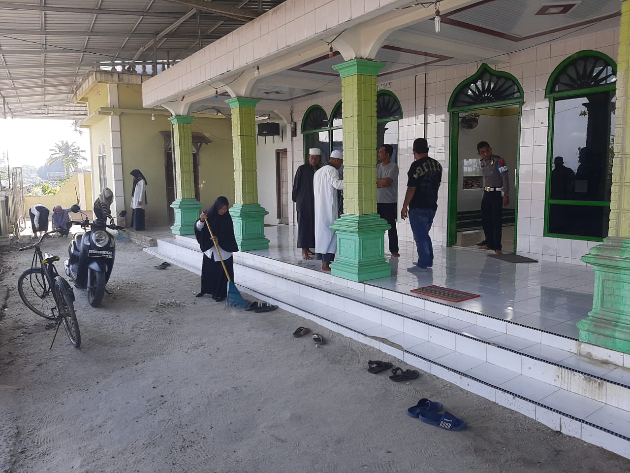 Kapolsek Medang Deras AKP Abdi Tansar, menyampaikan kegiatan humanis religi dengan cara bergotong royong melaksankan kebersihan, dan kali ini di mesjid Al Hasanah, Desa Sidomulyo, Kecamatan Medang Deras, Kabupaten Batubara.