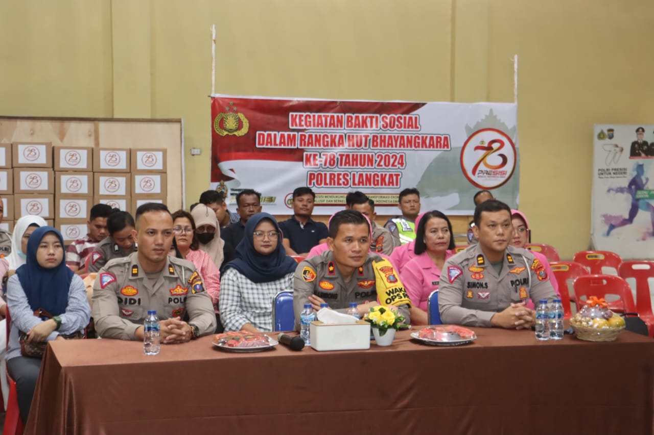 Langkat, INFOAKTUALNEWS.COM- Bakti sosial dan bantuan sosial dilakukan serentak di seluruh Indonesia dalam rangka HUT ke-78 Bhayangkara. Pembukaan kegiatan dipimpin langsung oleh Kapolri Jendral Polisi Listyo Sigit Prabowo di Lapangan Mabes Polri Selasa (25/6/2024).